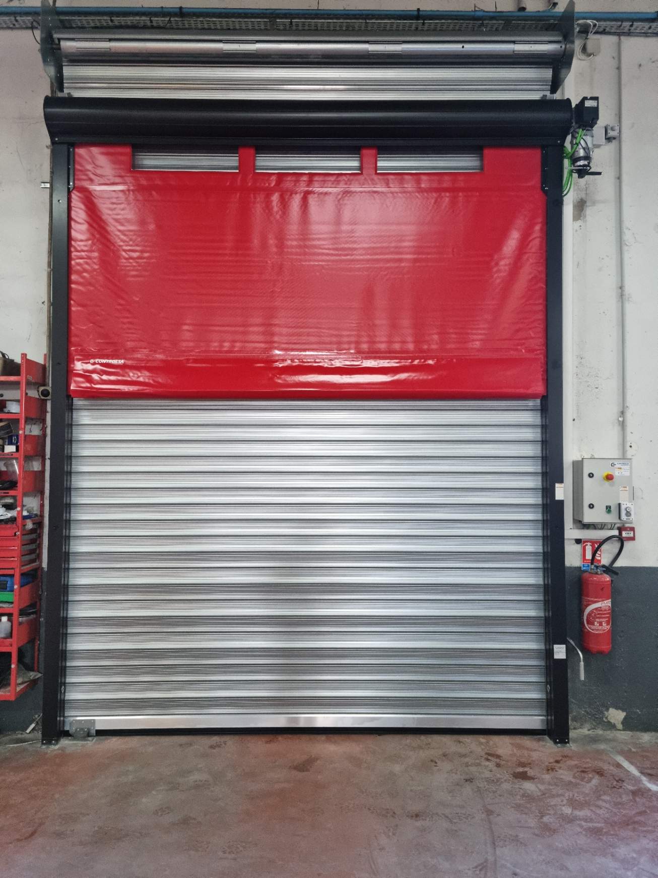Le client basé à Toulouse avait une porte sectionnelle qui n’était pas faite pour un usage intensif et, tombait en panne régulièrement. Nous l’avons remplacé par une porte souple rapide adaptée à l’usage de l’utilisateur avec un rideau métallique isolé pour fermer et sécuriser le bâtiment.