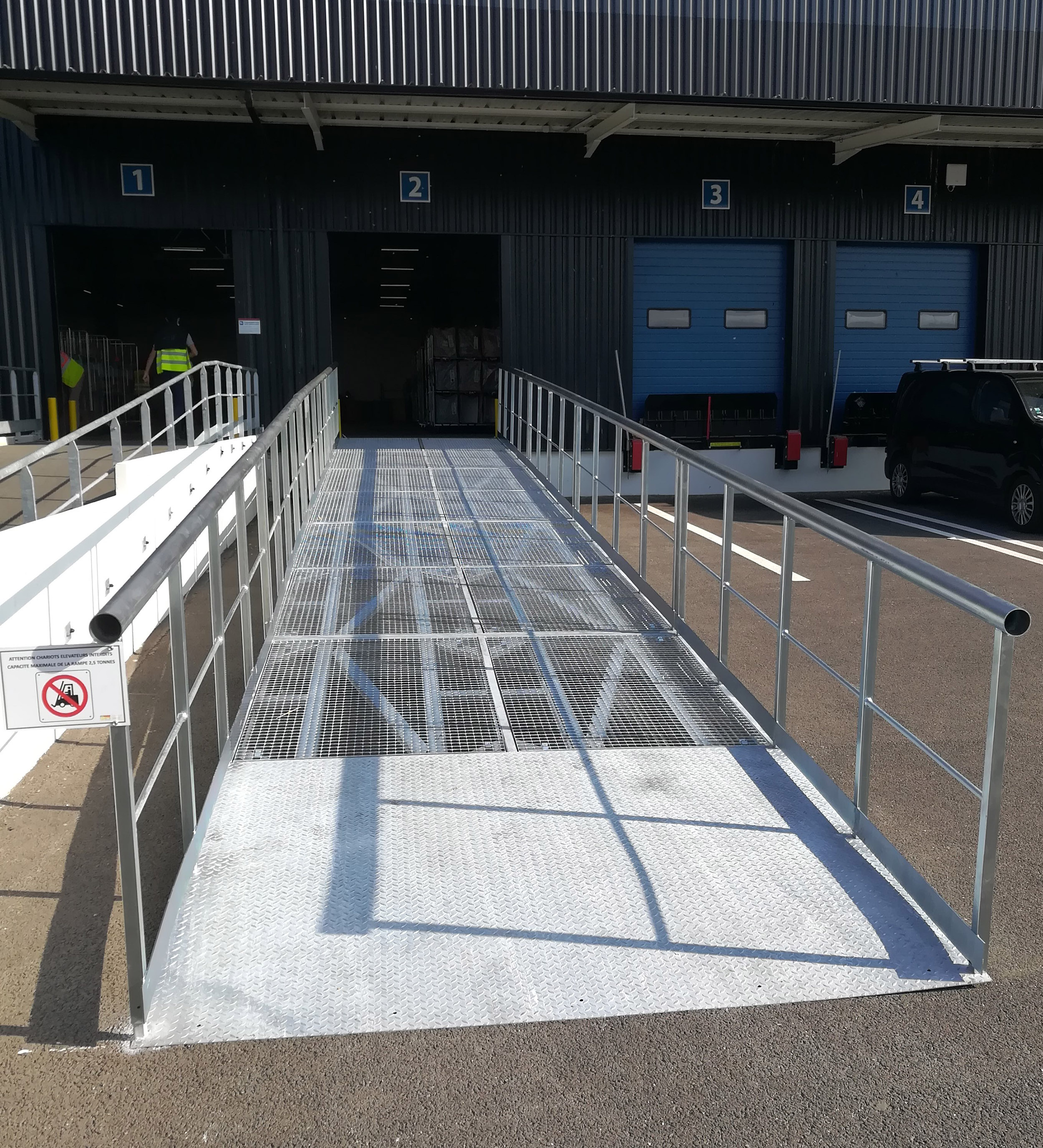 Un transporteur installé dans la banlieue de BORDEAUX souhaitait une rampe d’accès sur mesure et adaptée pour la manutention de marchandises type messagerie. Nous avons fourni la rampe d’accès et effectué son installation.