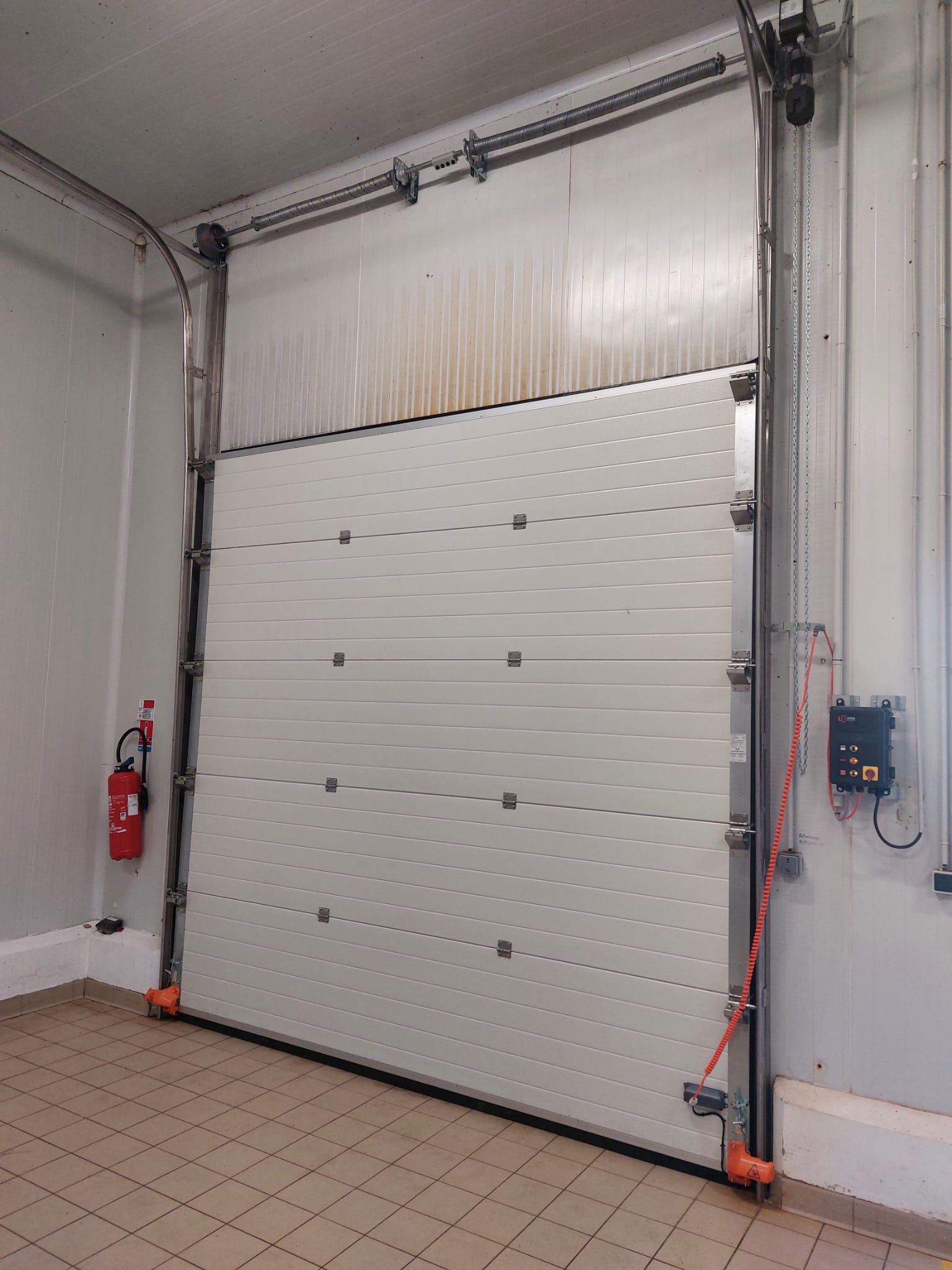 Le client avait une porte sectionnelle manuelle vétuste qu’il a souhaité remplacer par une porte sectionnelle électrique équipée de panneaux épaisseur 80 mm pour une meilleure isolation.